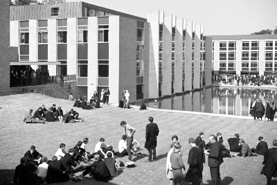 The College buildings were designed for their setting, including a small lake near which were placed the four original accommodation blocks (Derwent, Wear, Tyne and Tees) and the College's main building containing facilities including the largest Dining Hall in Durham. During the 1960s and 1970s, the Hall was used extensively for concerts featuring many well-known performers, which members of the college enjoyed, without charge, from the landing above the Hall.