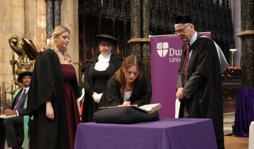 At the ceremony, our Vice-Chancellor and Warden, Professor Karen O’Brien was joined by Abigail Taylor, Durham Students' Union President and Professor Nathan Sempala-Ntege, our Dean of Colleges.
